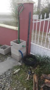 Si vous réalisez une fosse et que vous souhaitez mettre une gaine en réservation, PENSEZ A L’ATTACHER SOLIDEMENT pour qu’elle ne bouge pas et que vous ne soyez pas contraints à piquer comme moi une fois le béton coulé 😉