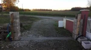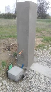 On coffre ensuite le pilier pour noyer l’IPN dans du béton. Nous avions volontairement laissé dépasser du pilier avant des ferrailles pour tenir l’IPN une fois posé