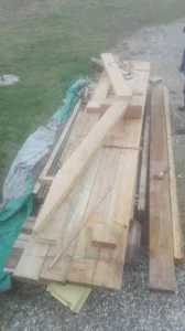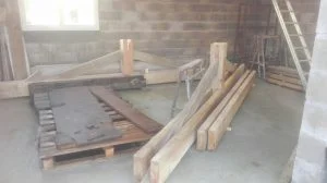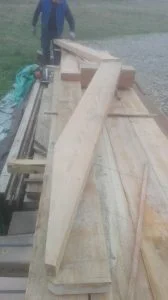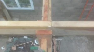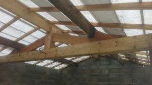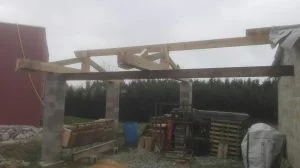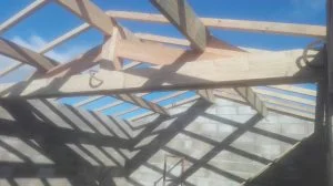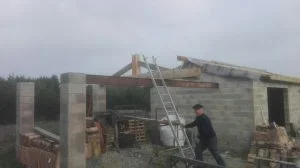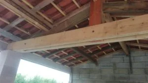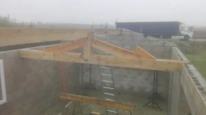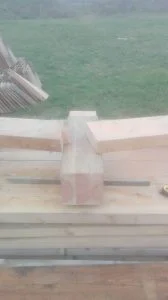 Puis on pose une ferme puis la seconde et enfin les poutres au faitage (75*225)