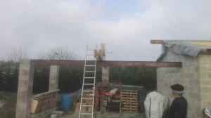Entre temps, avant la réalisation des pignons, nous avons posé l’IPN qui soutiendra la ferme centrale de l’appenti et permettra une ouverture totale de l’entrée de l’appenti sans soutien par un pilier central